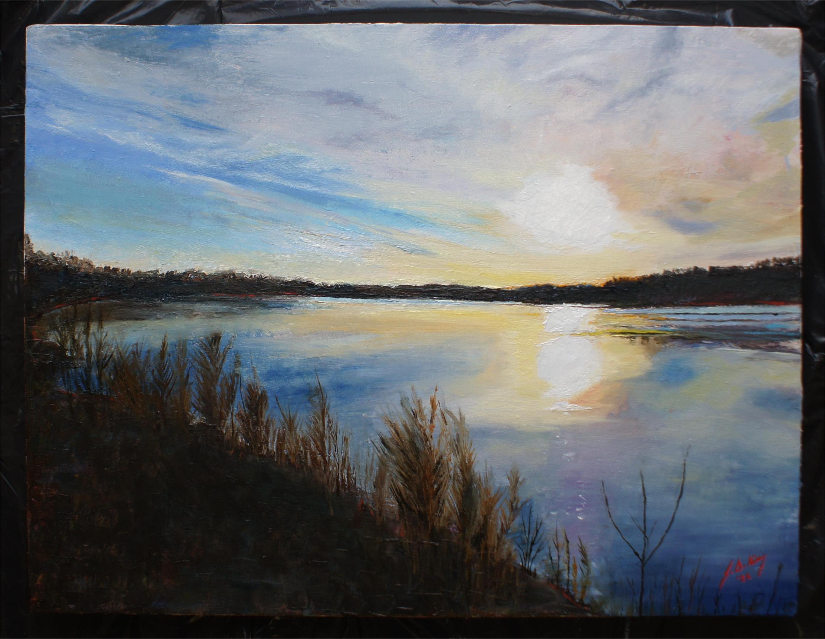 Hartsburg Access at Dusk Published February 25, 2026 at 2785 × 2159 Setting Sun at Hartsburg Access Oil on Canvas, Gallery Wrapped 29″ x 22″ x 1 1/2″