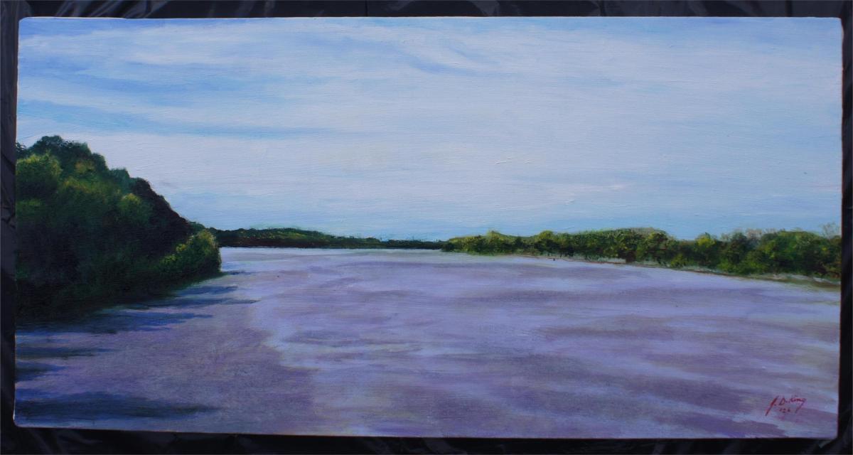 High Water Published March 10, 2026 at 3303 × 1763 The Missouri River at Hartsburg Access at high water. Oil on Canvas, Gallery wrapped, 33″ x 16 1/2″ x 2″