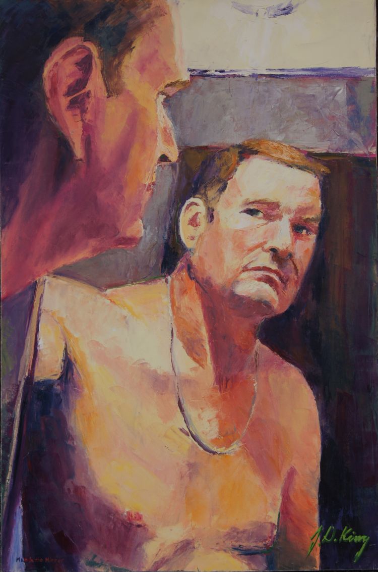 Man in the Mirror Published September 3, 2016 at 750 × 1133 Self Portrait Looking in the Mirror. Photo taken by Sally J. King Oil on Canvas