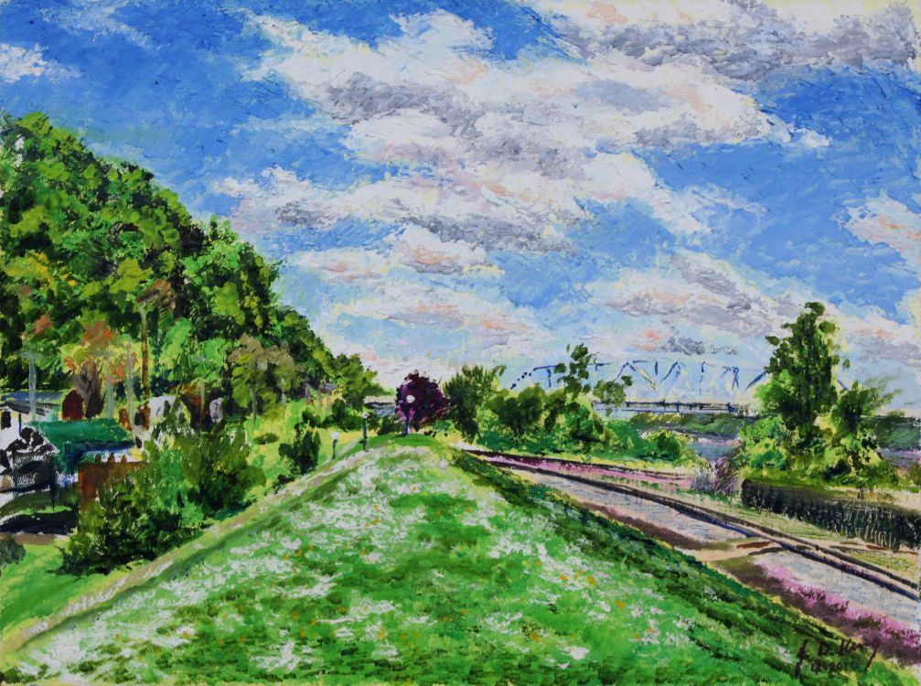 On Levee Published September 3, 2016 at 1007 × 750 Looking bridge over Mississippi River at Hannibal, MO Oil on Canvas