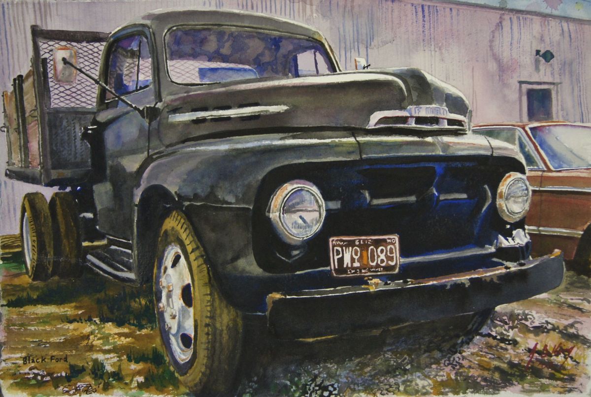 Black Ford Published October 10, 2019 at 2601 × 1750 I think this is either a 1953 or ’54. Watercolor on Arches 300 lb. Cold Press