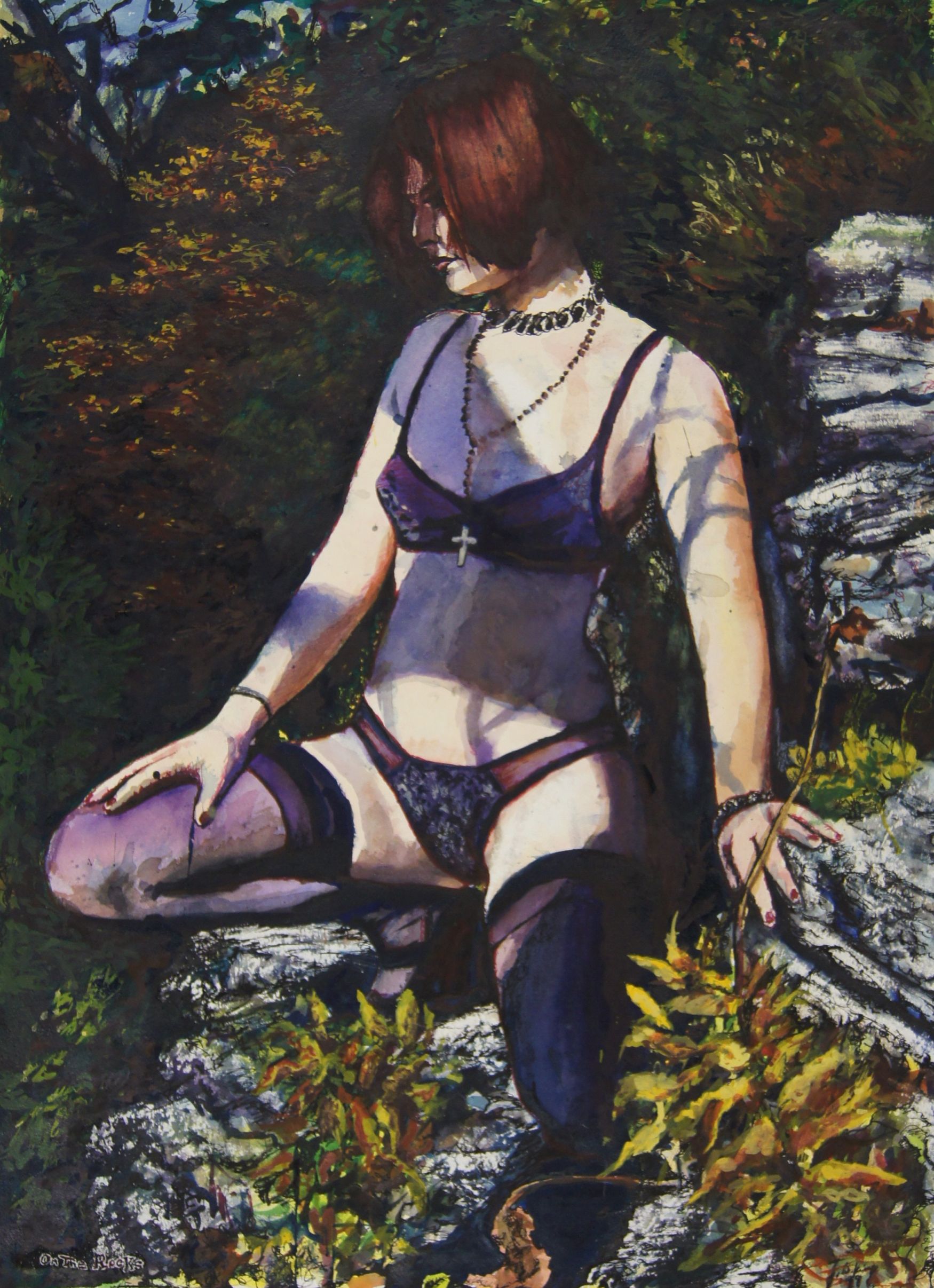 On the Rocks Published October 10, 2019 at 1750 × 2413 Our friend Jennifer posing on a cliff at Gans Creek. Watercolor on Arches 140 lb. Cold Press