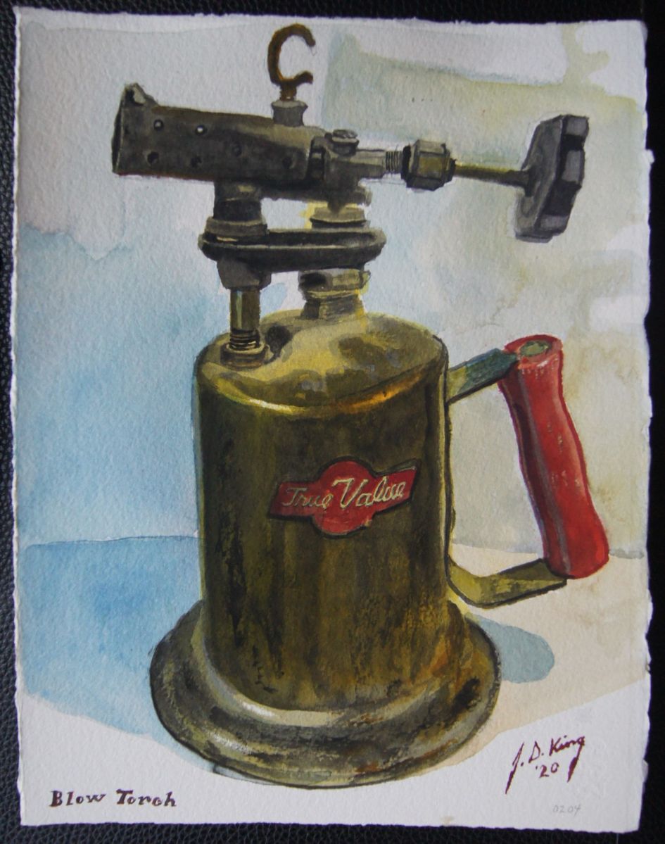 Blow Torch Published August 14, 2020 at 1750 × 2222 Iconic tool that generates a lot of heat. Watercolor on Arches 300 lb. Cold Press 10″x 13″