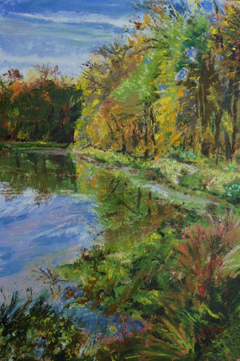 Twin Lakes II Published October 16, 2020 at 1750 × 2629 Plein-Air oil painting of Twin Lakes Recreation Area, Columbia, MO, Oct., 2020 Sold Oil on Canvas, 28″ x 41″