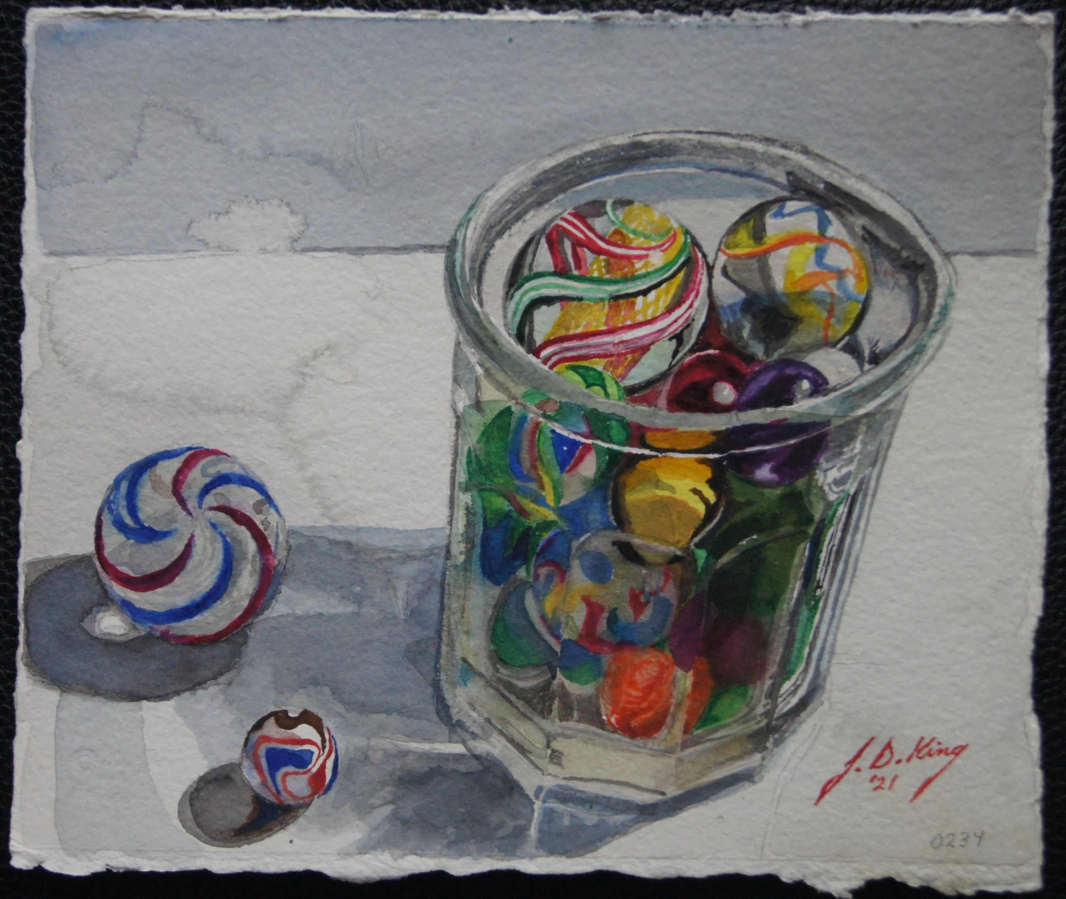 Low Ball Glass with Marbles Published July 28, 2021 at 2076 × 1750 Different kind of treasure Watercolor on 300 lb. Arches