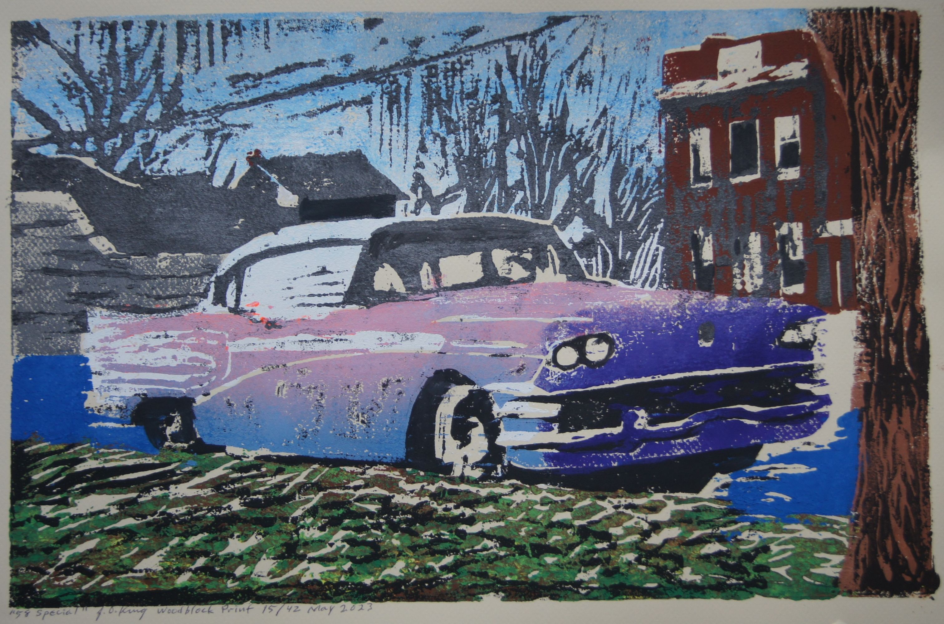 58 Special Published May 9, 2023 at 3025 × 2000 Woodblock print of a1958 Buick Special our family had and enjoyed in the mid 1960s Woodblock print on Canson 40 lb. archival paper. 17″ x 11″
