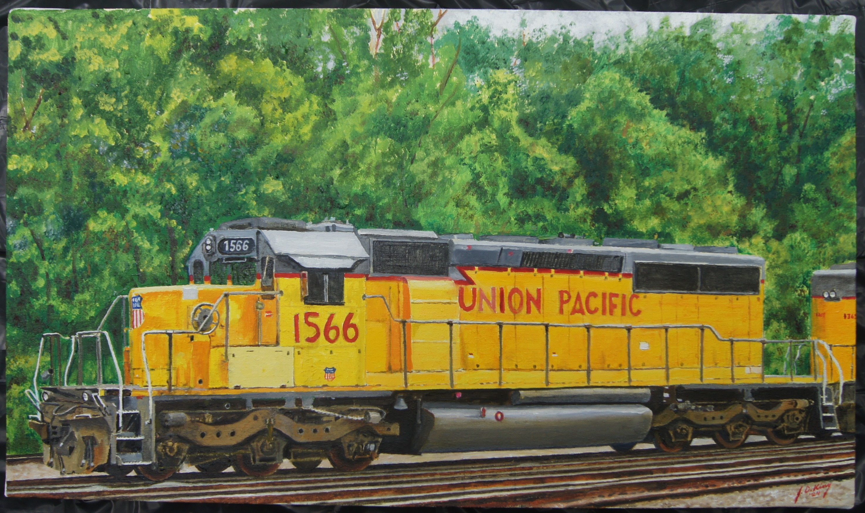 UP 1566 Published September 14, 2024 at 2949 × 1748 UP 1566 SD40-2 Jeff City, MO. Oil on Canvas, Gallery Wrapped, 19″ x 33″ x 1 1/2 “
