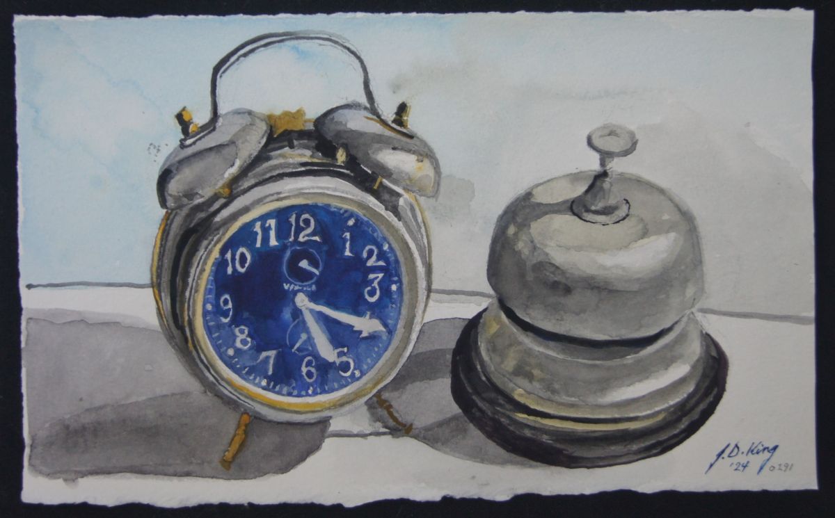 Twenty After Five Published September 25, 2024 at 2818 × 1750 Two useful mechanisms with bells. Watercolor on Arches 300 lb. Cold Press 9″ x 14″