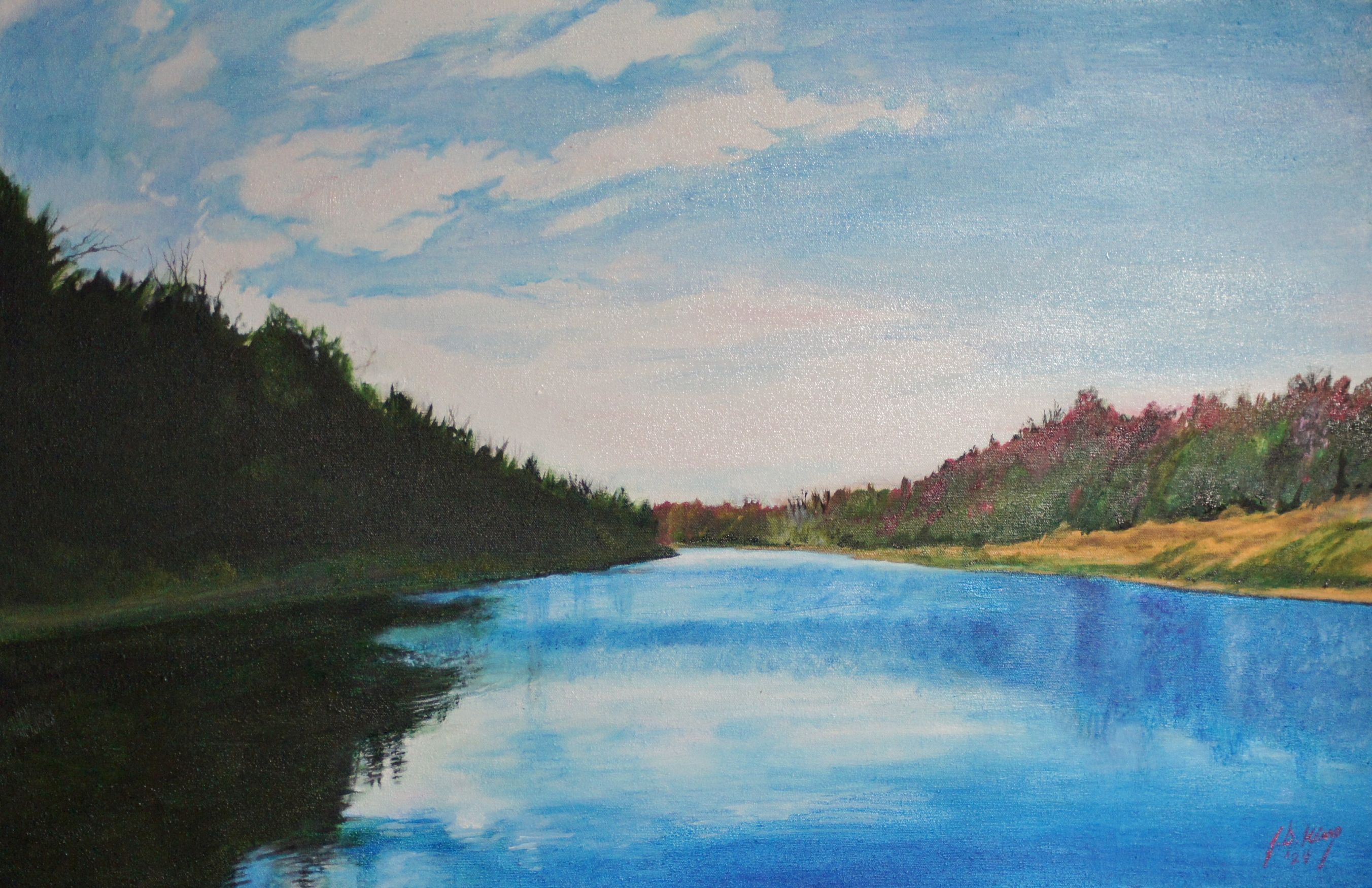 Lake at Rocky fork Published December 13, 2024 at 2704 × 1750 A beautiful Fall day at Rocky Fork Oil on Canvas, Gallery Wrapped, 22″ x 34″ x 1 1/2″