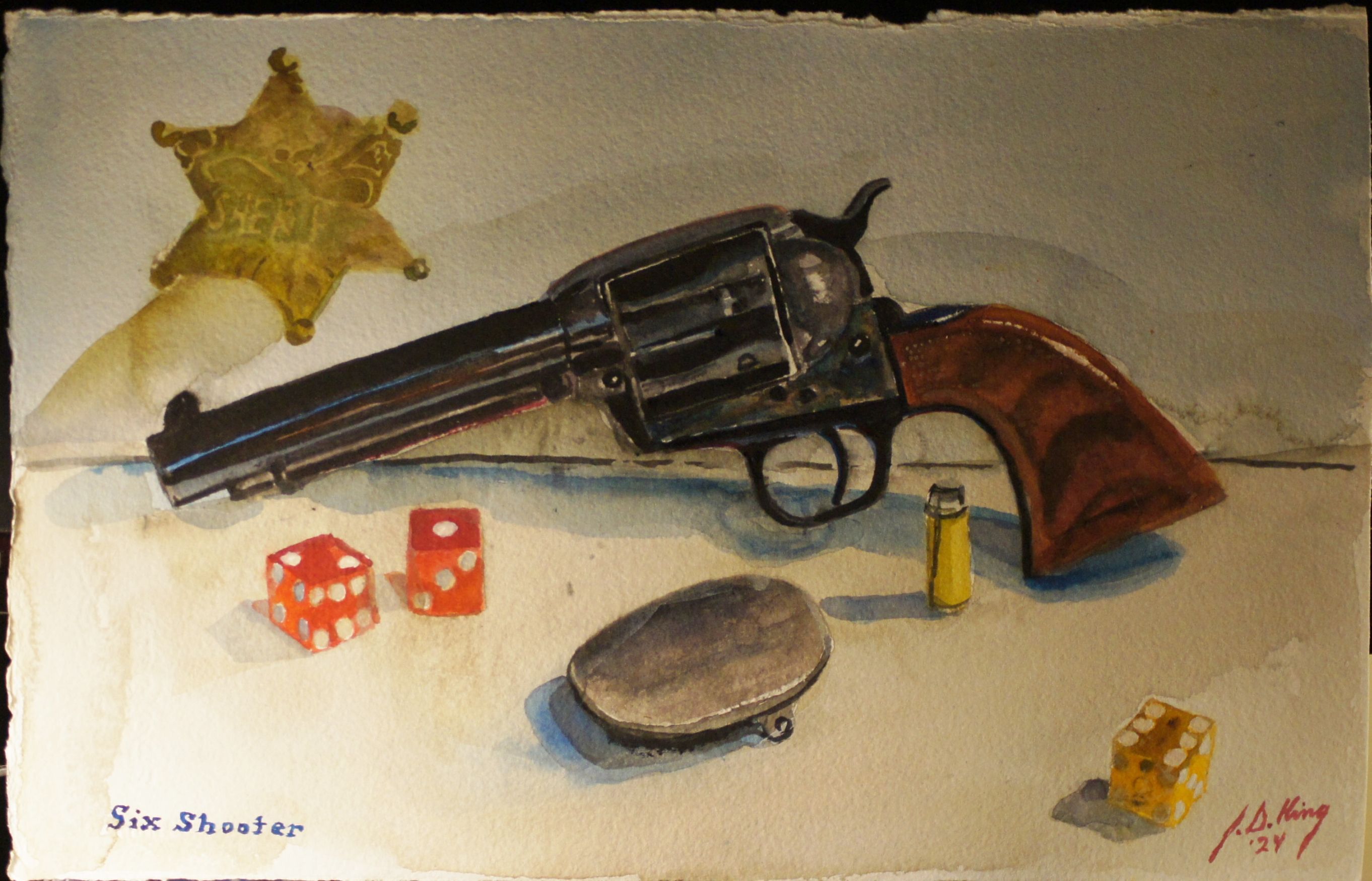 Six Shooter Published December 17, 2024 at 2724 × 1750 This is what the cowboys carried Watercolor on 300 lb. Arches Cold Press 10″ x 16″