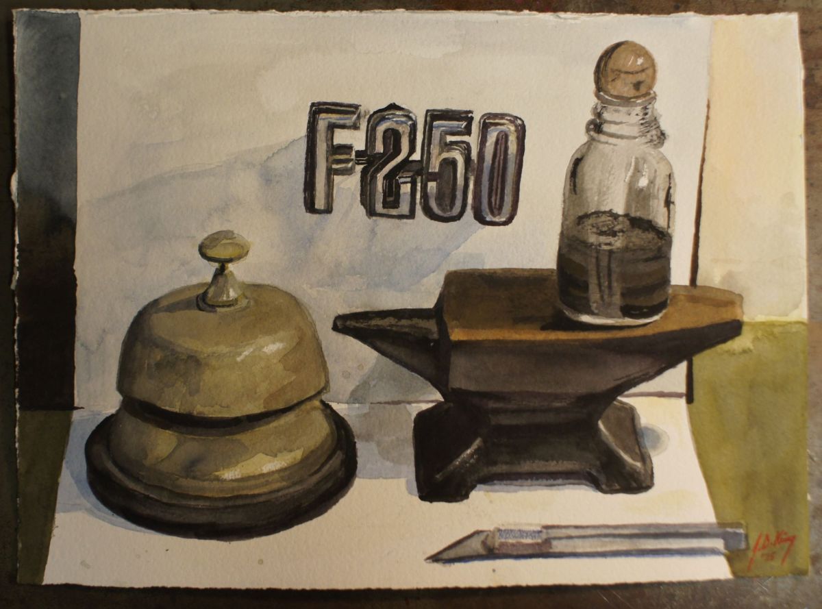 F250 and Friends Published July 13, 2025 at 2361 × 1750 Study in Mted colors on hard objects Watercolor aon Arches 300 lb. Cold Press 14″ x 10 1/2 “
