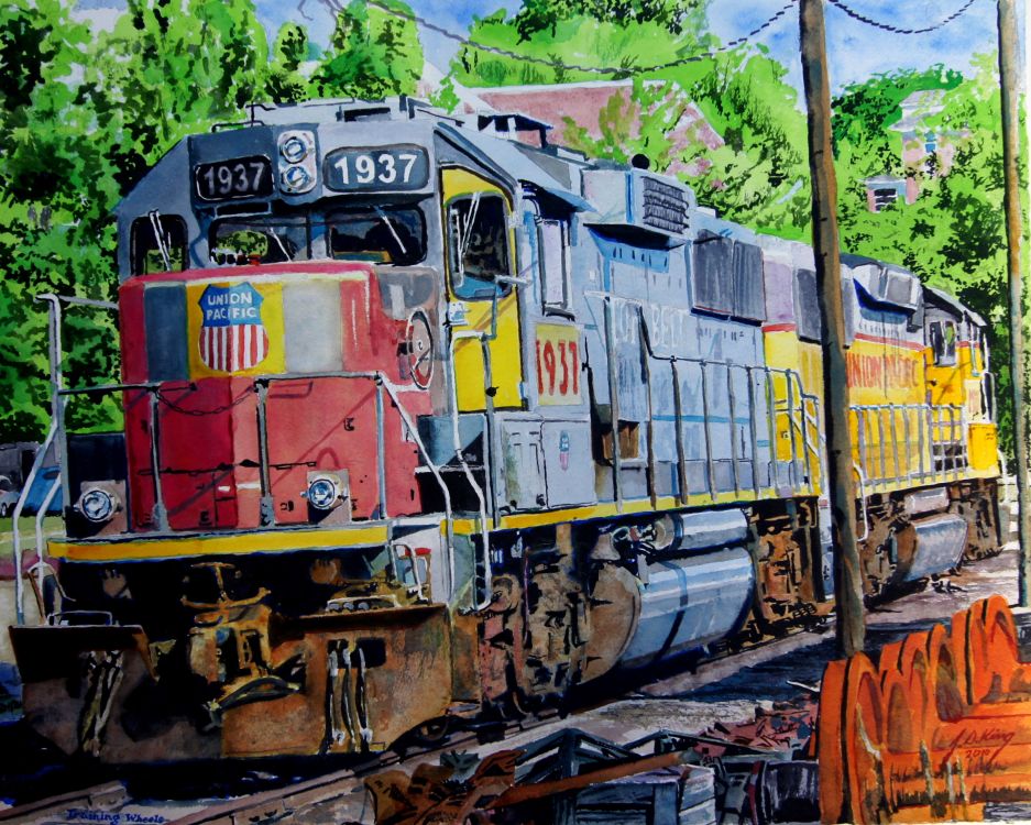 Training Wheels Published September 3, 2016 at 937 × 750 EMD Union Pacific Locomotives, Jefferson City, MO. Watercolor on Cold Press Arches