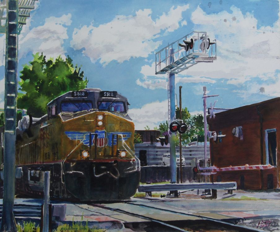 Crossing Ohio Published September 3, 2016 at 904 × 750 Union Pacific locomotive in Sedalia Missouri. Watercolor on 300 lb. Arches